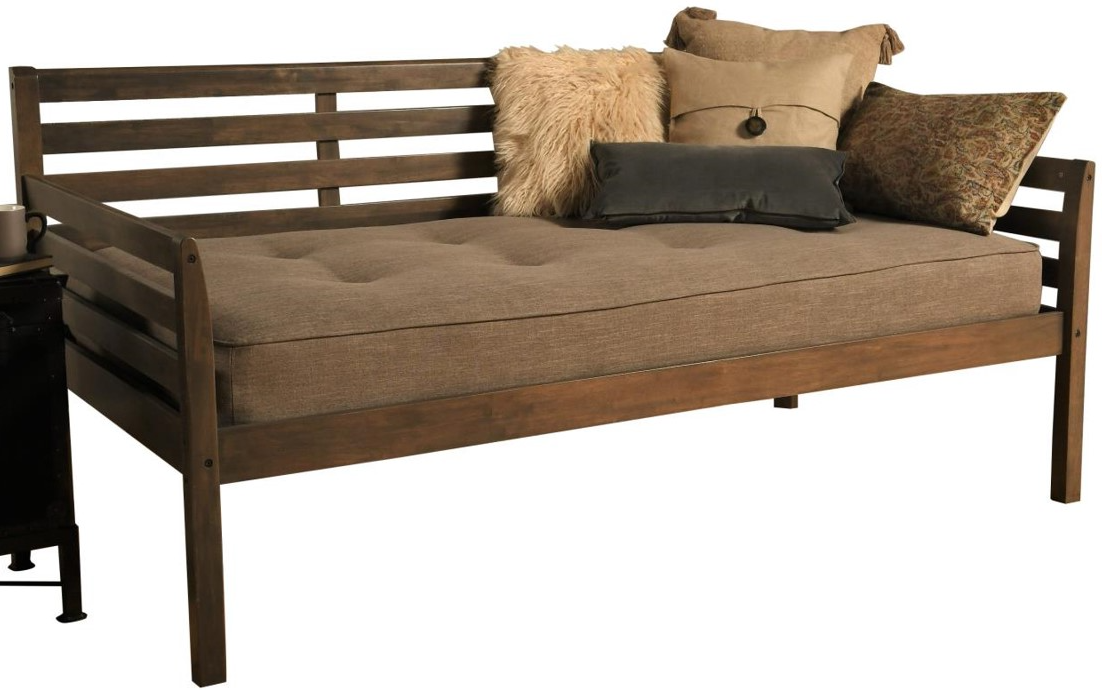 Kodiak Furniture Boho Linen Stone/Rustic Walnut Twin Daybed with Mattress