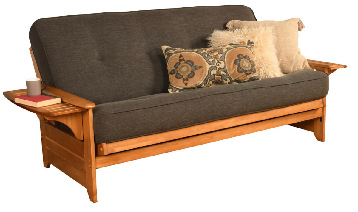 The Phoenix futon is a classic hardwood frame with tray style arms. This unique and versatile full-size futon sofa easily converts to a Bed. It offers three positions - sit, lounge and sleep to seemlessly transition from day to night. This multifunctional piece of furniture can find a home in just about any type of room.Read More