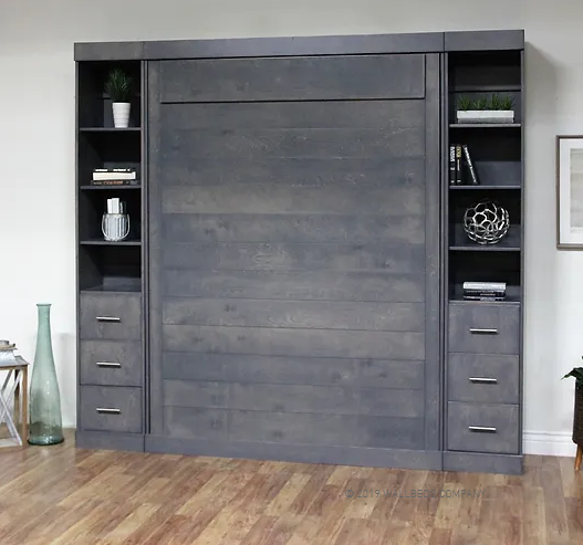 The Fern Murphy Bed is a space-saving wall bed known for its modern design and ability to blend with evolving furniture trends. It features individual, randomly selected wood planks for a unique look, and is available in various finishes and with optional side cabinetry and desk units. The Queen-sized bed can accommodate mattresses up to 12 inches thick and is designed to integrate seamlessly into home offices or guest bedrooms.Read More