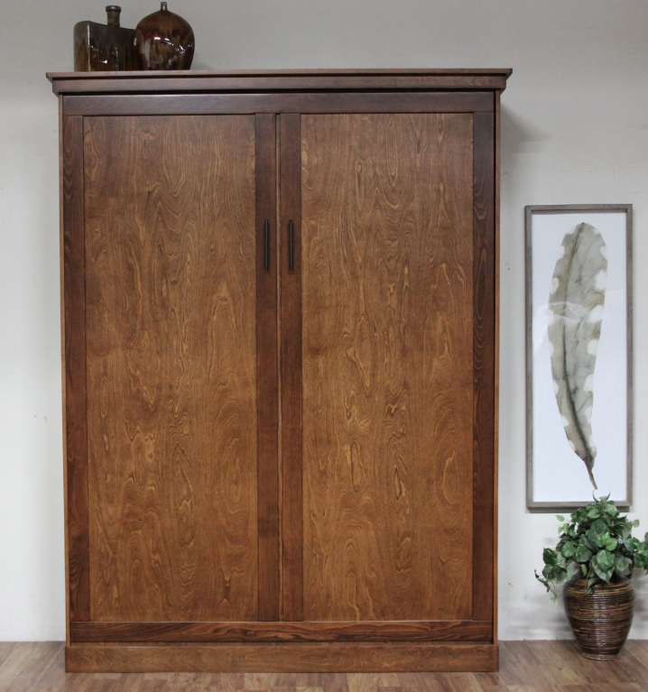JAZZ is made in the U.S. from farm grown European Beech solids and domestic veneers for superior durability. It features a mattress box surround (mattress not included) so your bedspread can remain in place when you close your bed. Accepts standard mattress up to 12” thick. We notch out the cabinet back 1” x 6” to accommodate most baseboards. Floating safe piston lift mechanism. By simply grasping the center handles, use your body weight to help the bed open very slowly toward the floor. Once partially opened the bed will float down the rest of the way to the floor.