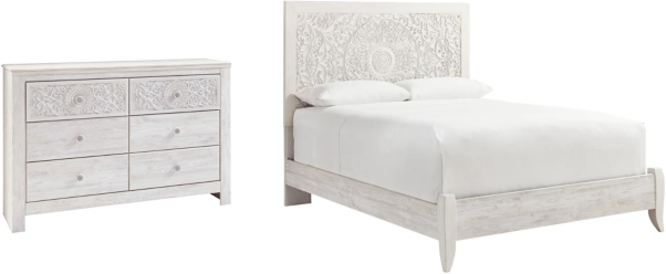 A one-of-a-kind trendsetter deserves a bedroom retreat that celebrates their unique flair—and the Paxberry bedroom set is so befitting. The exquisitely-carved headboard is a testament to boho-chic style. With subtle bohemian touches, the headboard and dresser are delightfully different, and a charming whitewashed finish sets a foundation for a room bursting with personality.